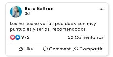 Le pedimos a los clientes que dejen reseñas aquí después de que vemos que ya llegó su pedido